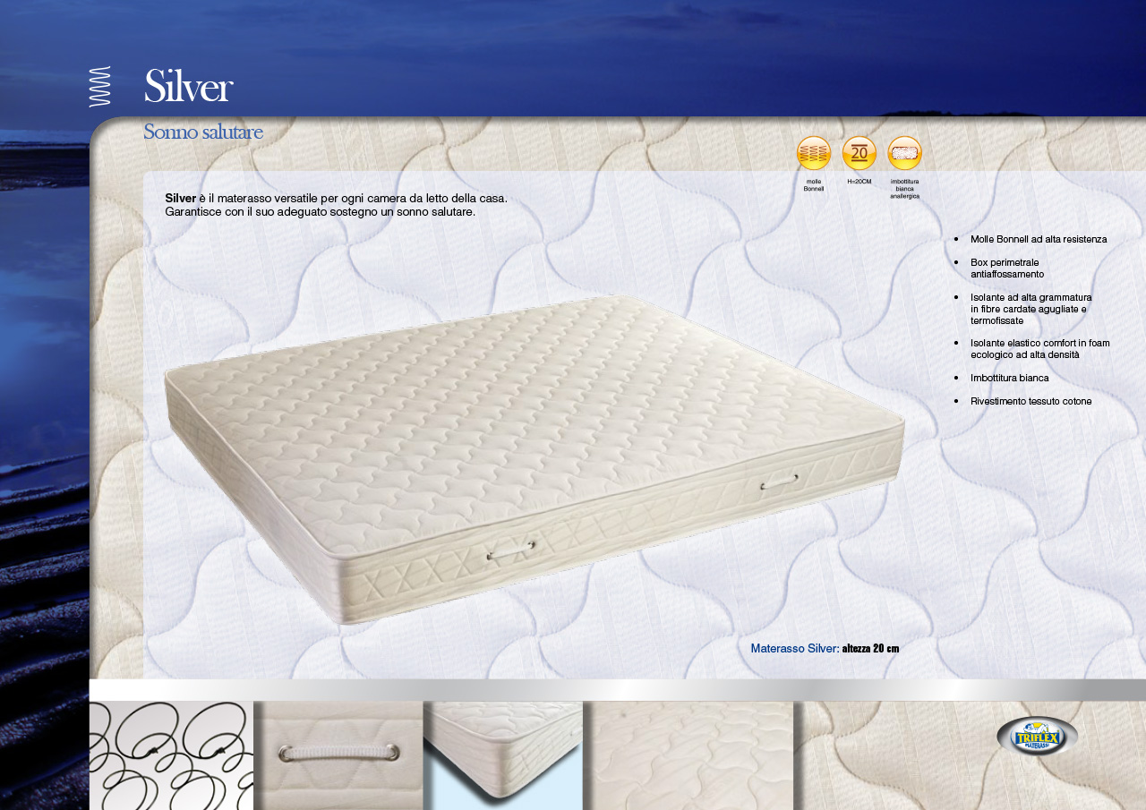 Silver è il materasso versatile per ogni camera da letto della casa. Garantisce con il suo adeguato sostegno un sonno salutare.