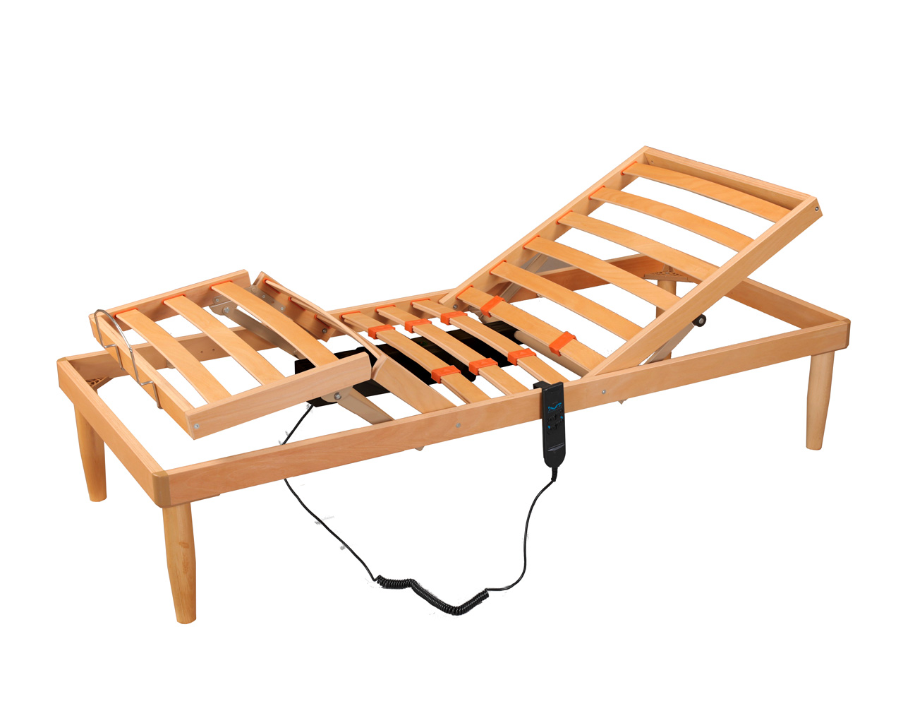 Piedi in legno massello di diametro mm 60, fissati in apposite piastre in nylon con battente a squadra. Cursori per la personalizzazione della rigidità nella zona del bacino. Angoli arrotondati antigraffio.
